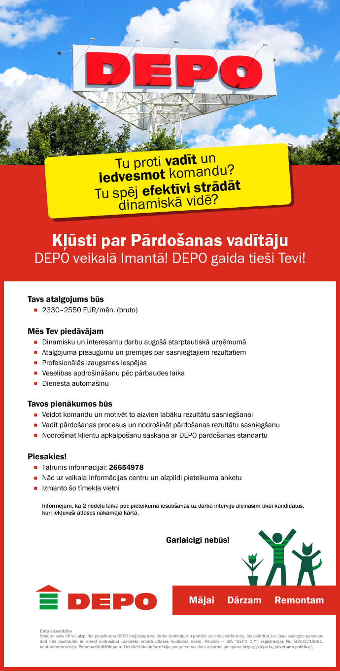 Nodrošināt klientu apkalpošanu saskaņā ar DEPO pārdošanas standartu