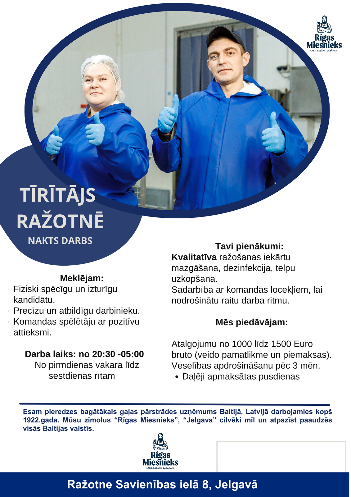 • Spēja un vēlme strādāt fiziski aktīvu darbu nakts laikā.